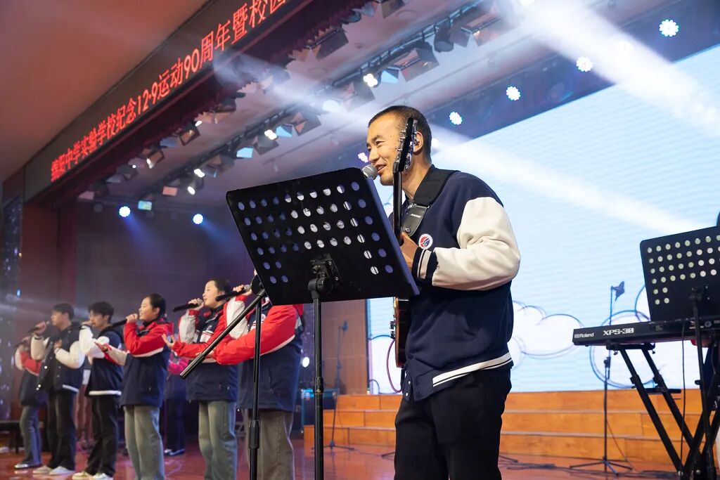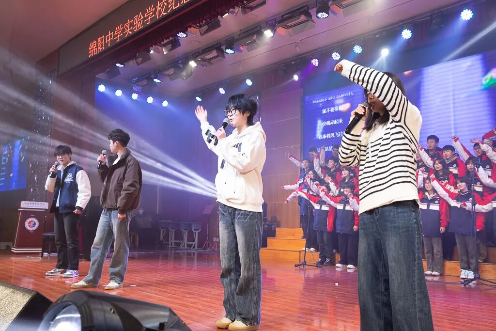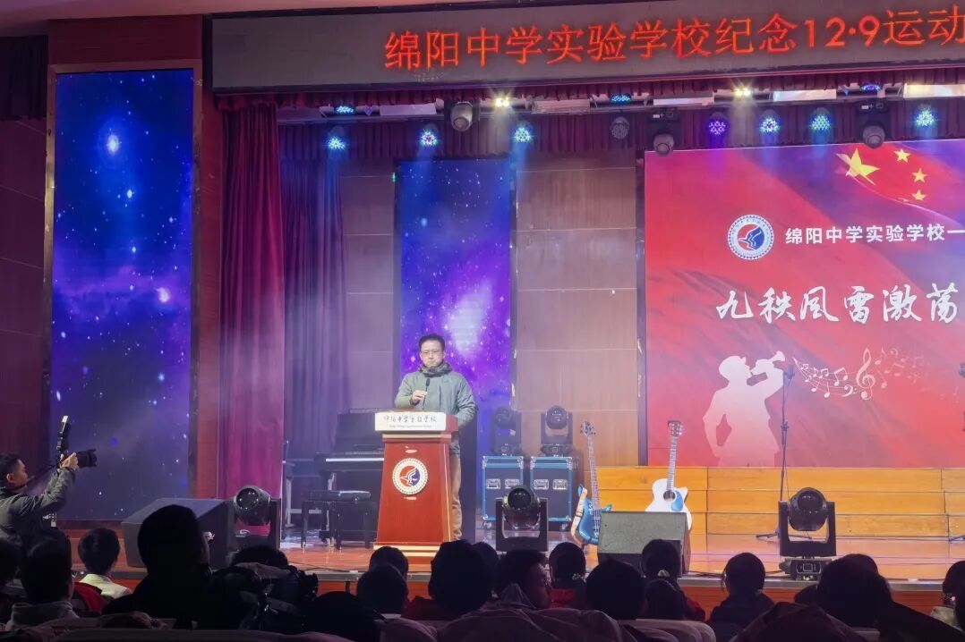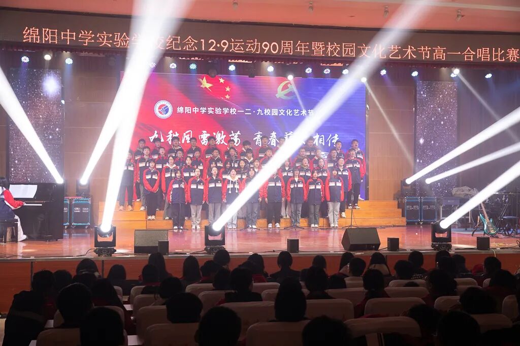 2025年12月5日,绵阳中学实验学校学术报告厅B内歌声嘹亮、掌声如潮。以“九秩风雷激荡,青春薪火相传”为主题的高一年级纪念“一二·九”运动90周年合唱比赛在此隆重举行。全校高一年级34个班级、千余名师生齐聚一堂,以音乐回溯历史,用歌声礼赞时代,在激昂的旋律中完成了一堂生动而深刻的爱国主义教育实践课。