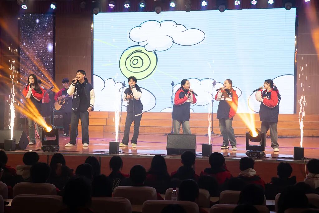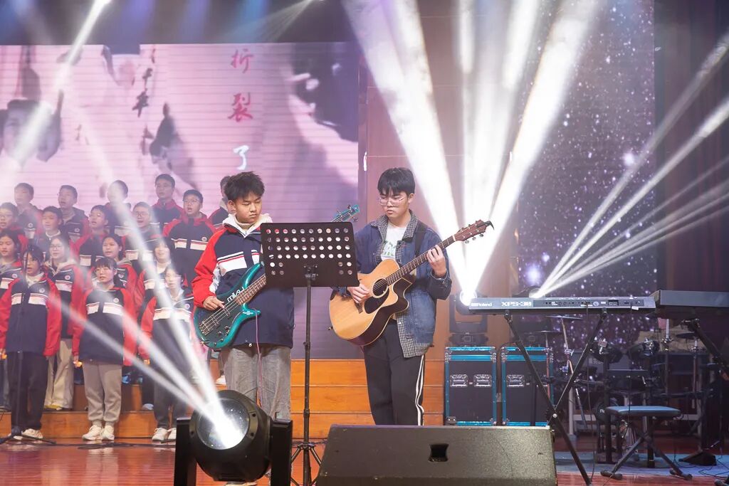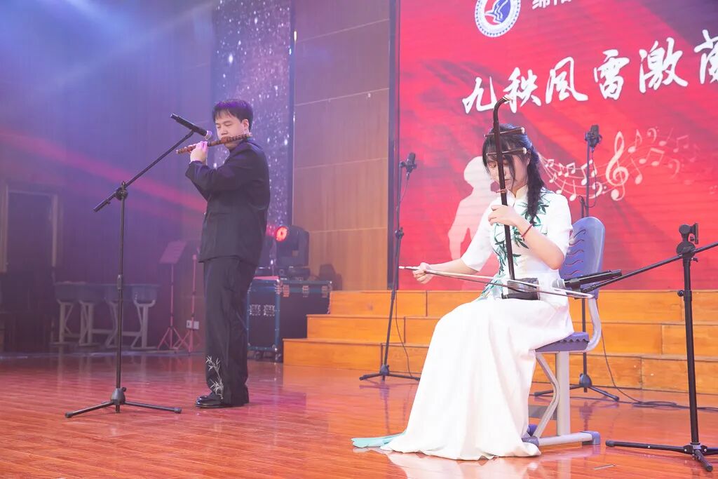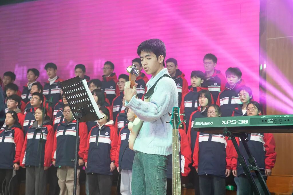比赛还特别设置了精彩的中场表演环节。校吉他社的《鲜花》带来现代音乐的清新之风;民乐社演绎的竹笛独奏《红高粱叙事曲》、二胡齐奏《赛马》、古筝独奏《行者》,则以精湛技艺展现了民族音乐的独特魅力;声乐特长生的独唱则洋溢着专业气息。这些表演不仅丰富了比赛内容,更彰显了学校素质教育的丰硕成果与学生多元发展的蓬勃生机。